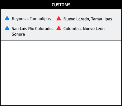 Our fleet is ready to give cross border service in Nuevo Laredo and Colombia in addition, we have commercial partners in Reynosa and San Luis Rio Colorado. We offer a service of quality and guaranteed security; since we move your load using the preferential rail FAST thanks to that our fleet is C-tpat certified.